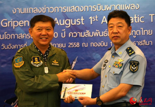 冯爱旺少将表示,中泰是友好近邻,“中泰一家亲”的概念深入两国人心,中泰两国两军、两国空军友谊深厚。希望此次飞行表演取得圆满成功,两国空军传统友好合作关系迈上新台阶。