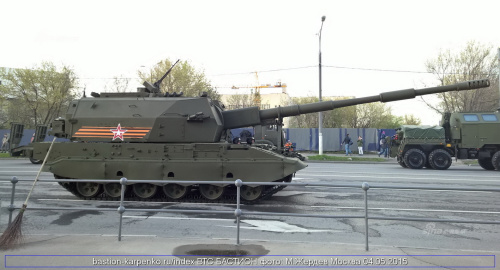 2S35“联盟”-SV自行榴弹炮设计用于替换2S19“姆斯塔”-S榴弹炮,有望配用新型152毫米分装式炮弹。其战斗乘员舱顶部安装的是遥控战斗模块,遥控战斗模块上安装有12.7毫米机枪,其两侧安装有902B“图卡”烟幕榴弹发射器。2S35样炮已于2015年5月安装在T-72/90坦克底盘上进行了演示,而随后安装在“阿玛塔”车族平台上。(刘婧)