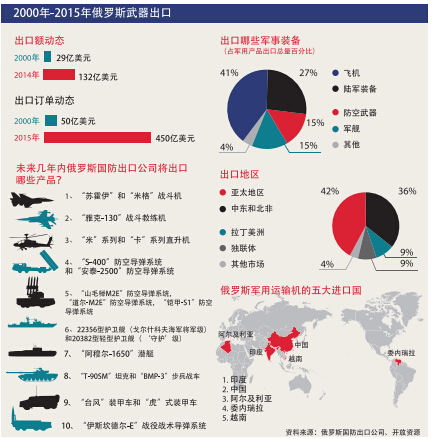 俄罗斯国防出口公司总经理阿纳托利·伊赛金(Anatoliy Iskaykin)今年10月末对记者表示,目前俄罗斯企业与其他国家军事技术合作订单量超过500亿美元。他还指出,公司2000年成立之初,俄罗斯军事装备主要面向印度和中国两个国家出口,如今已与70个国家建立了合作关系。
