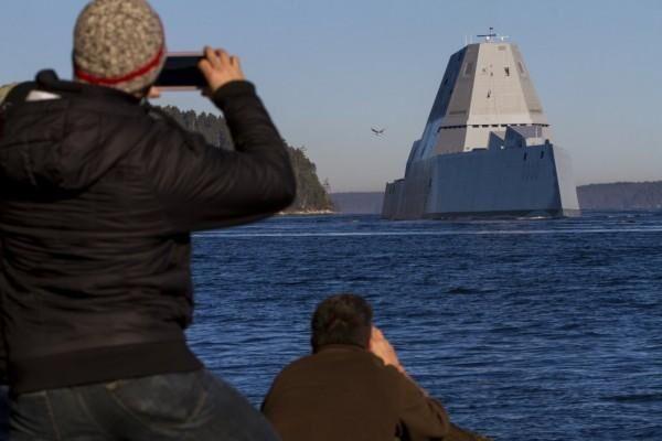 当地时间12月7日,美国海军DDG-1000“朱姆沃尔特”级驱逐舰首舰从缅因州造船厂出发进行海试。超过200名造船工人、水手和居民在场欢送驱逐舰出航。这艘驱逐舰历时7年时间建造,舰身全长183米,满载排水量约15000吨,装备新型作战系统、雷达和声纳仪器以及电子推进设备。