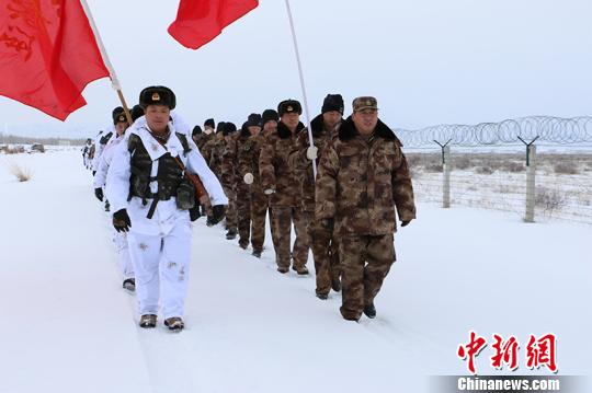 中新网北屯12月22日电 (陈振旺 宋彬彬)严冬时节,雪地练兵,12月22日,地处中哈边境一线的新疆生产建设兵团第十师一八六团武装民兵与该团驻地部队官兵一道,沿着中哈边境线在深达30公分厚的雪地中开展拉练,以此提升民兵在极端寒冷天气下的维稳戍边处突能力。