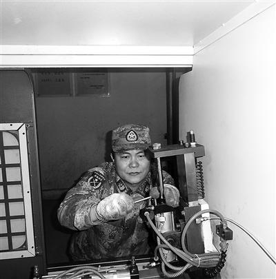 王晶亮在进行某型装备系统安装测试。(付修卿 摄)