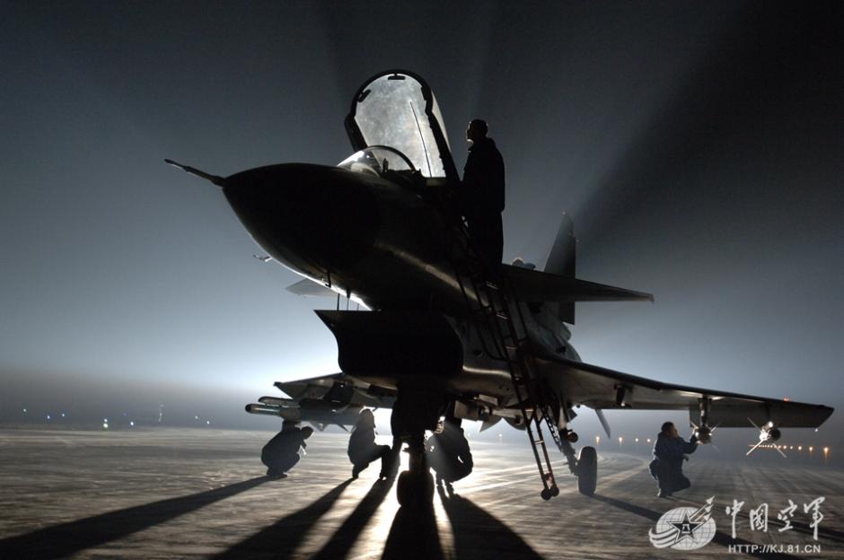 夜已深了,但官兵们还在仔细检查战机,确保一声令下,随时出击。