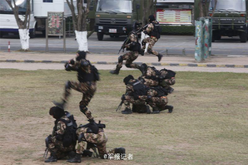 “前方100米处发现目标,注意隐蔽!”近日,驻守在粤港澳边海防一线的广东边防总队机动支队特战八中队30多名突击队员,开展班组战术演练,检验和提升部队遂行多样化任务实战能力。