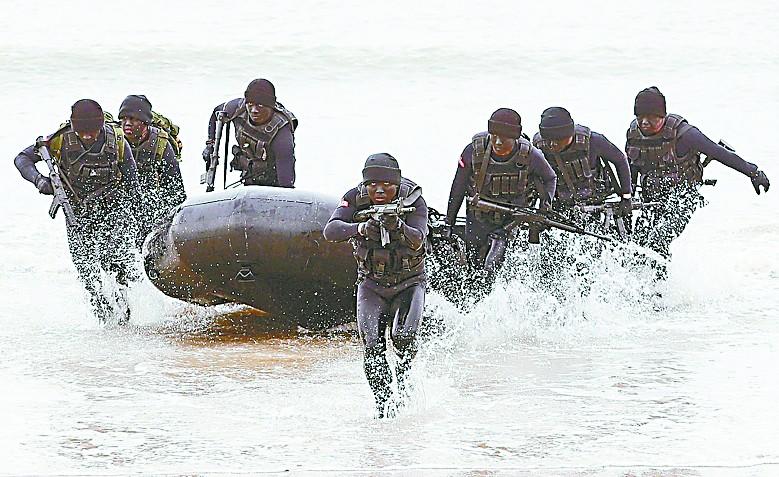 台湾“国防部”26日上午举行战备操演,开放部署在金门的两栖侦察营海龙蛙人部队,操演十余年未公开曝光的渗透敌人滩岸、摸哨袭杀哨兵与爆破敌区军事目标的攻势战术课目(如图)。操练时间点因为安排在台湾“大选”后以及农历春节前,引发岛内外关注。