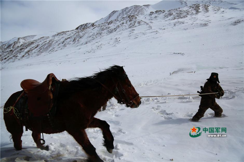 冬季的西陲边防线上,除了满目的银装素裹,还有漫天的寒风飞雪。一群骑着军马,戴着棉帽、面罩、护目镜,穿着迷彩大衣,背着各类战斗装备的边防军人,沿着巡逻线路艰难而又坚定地前行着。