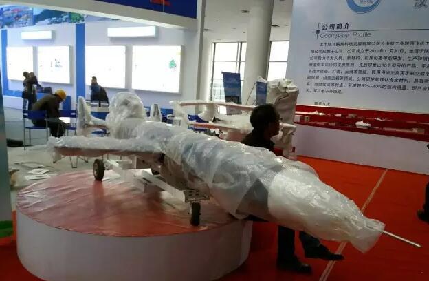 特别引人关注的是,在陕飞集团汉中陕飞联翔科技发展有限公司展台上,展出了一款国产新型高空高速靶机。从展板资料来看,该靶机机长为3米,翼展为1.7米,最大起飞重量为150千克,最大飞行速度可达0.72马赫,巡航时间大于1小时,巡航高度为6千米。由于尚处于布展状态,该靶机还未露出真面目,被严实的包裹着。
