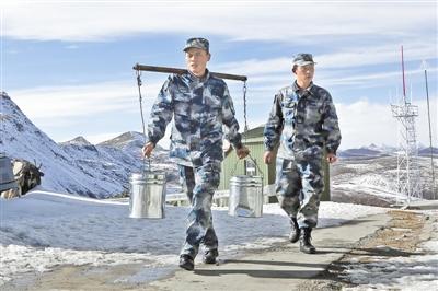 刘富成和毕文富轮流挑水,走上海拔5134米的阵地。