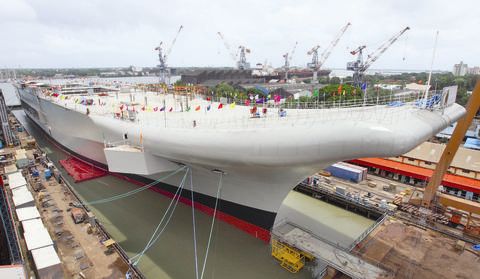资料图:印度第一艘国产航母“维克兰特”号在南部港口科钦下水。