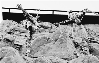 图为13年12月24日,官兵进行崖顶绳降训练的场景。(吴迪 摄)