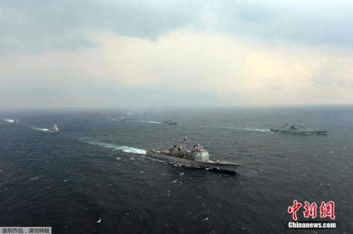 资料图:当地时间2014年3月14日,韩国韩国与美国军舰参加韩美2014“鹞鹰”联合军演