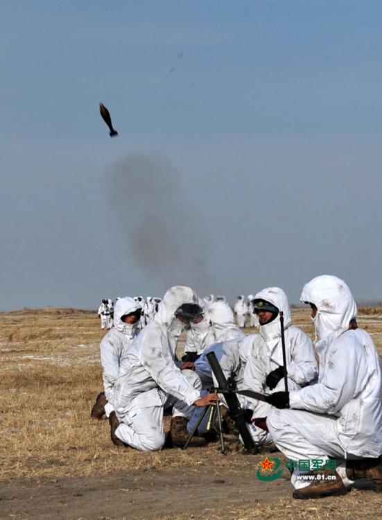 1月25日,正在洮南进行寒训的海军陆战队进行带有实战背景的实际使用武器训练。