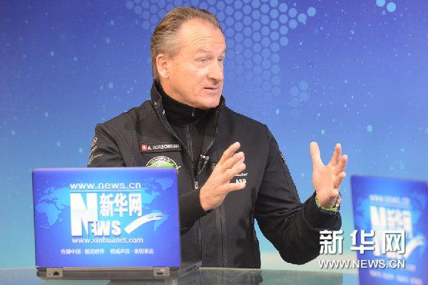 瑞士“阳光动力”CEO、“阳光动力2号”环球首飞飞行员安德烈·博尔施伯格在新华网接受访谈,