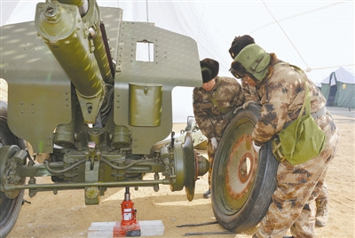 2月初,吉林某预备役炮兵团挺进林海雪原,开展严寒条件下支援保障演练。图为预备役官兵在演练开始前检修火炮。(郑万宝 摄)