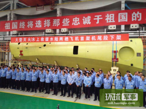 4月27日,我国自主研制的大型灭火/水上救援水陆两栖飞机首架机尾段在陕飞下架。