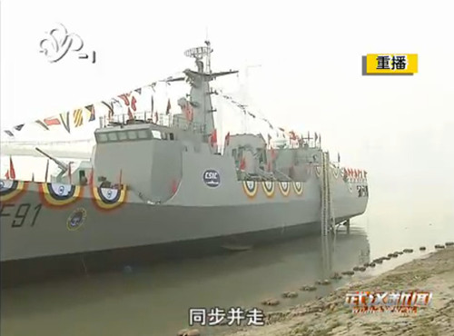 资料图:2014年1月27日,由武船建造的中国最新一代出口型近海巡逻舰---尼日利亚海军P18N项目首舰 NNS F91 舰成功下水。