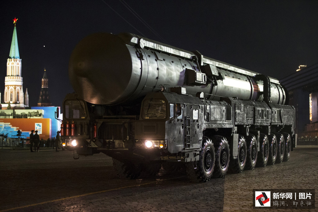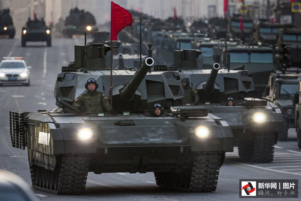 5月4日,俄罗斯纪念卫国战争胜利70周年阅兵式的二次彩排。俄方首次展示最新的顶级武器系统,如RS—24型“亚尔斯”洲际导弹和最新一代主战坦克阿尔玛塔T-14。俄军新型装甲运兵车、高精度火炮、苏-30和苏-35战机也首次亮相红场。