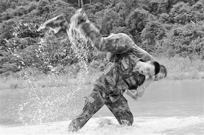 四月下旬,云南省蒙自军分区将官兵拉到野外生疏地域组织战术训练,锤炼部队打仗能力。图为官兵在水中进行格斗训练。(本报特约记者 严浩摄)