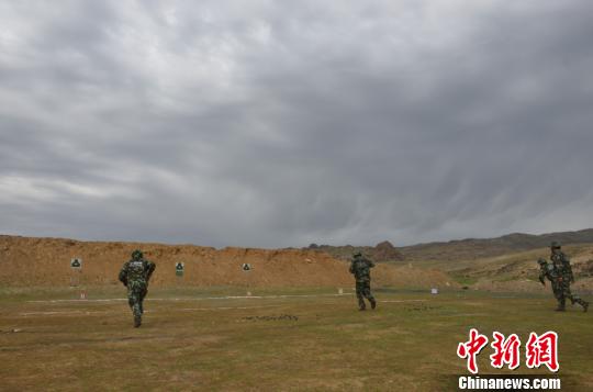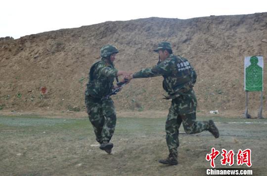 图为武警新疆边防总队红山嘴边检站官兵正在进行协同配合迅速射击演练。 刘相坤 摄