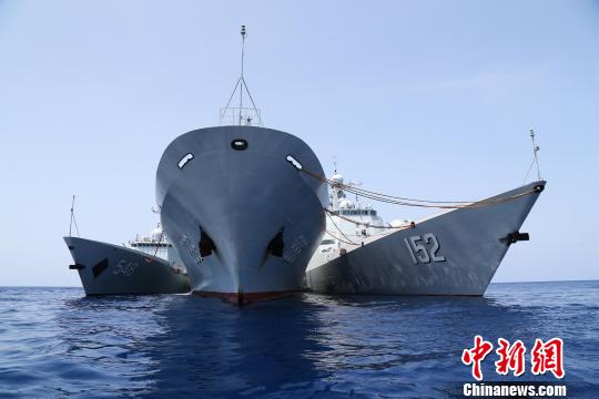 济南舰、益阳舰、千岛湖舰三舰在亚丁湾西部海域并靠在一起。 代宗锋 摄