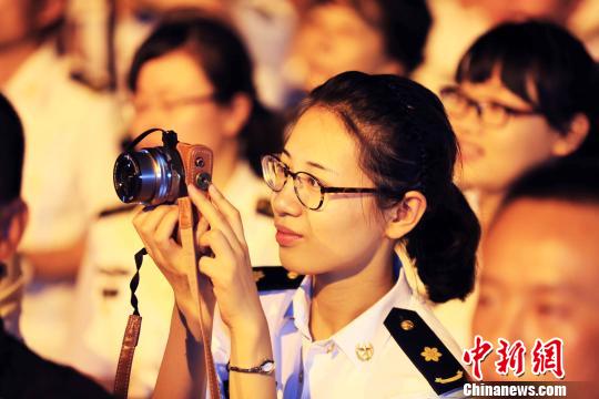 千岛湖舰飞行甲板,灯光灿烂,编队官兵欢聚一堂,晚会在一浪高过一浪的拉歌声中拉开帷幕。