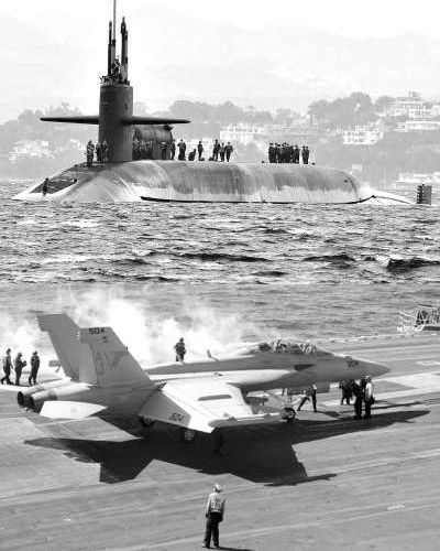 上方为“佛罗里达”号核潜艇,下方为 “咆哮者”电子战机。