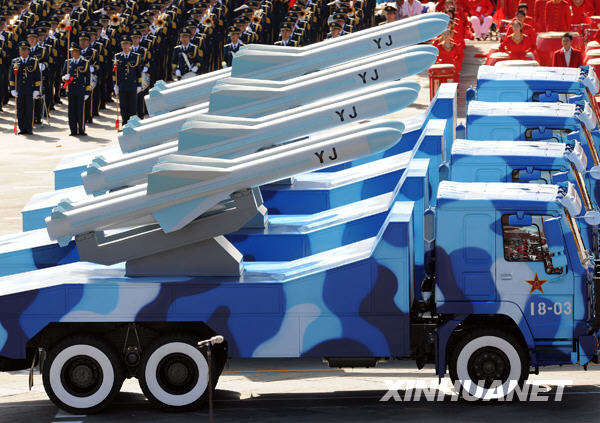 首都各界庆祝中华人民共和国成立60周年大会在北京天安门广场举行。这是海军反舰导弹方队。