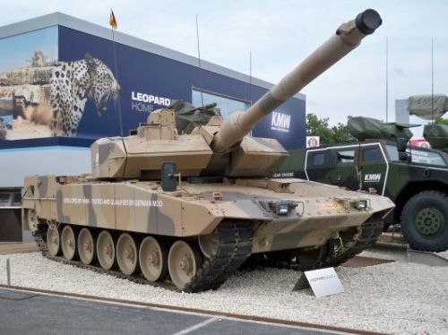 在萨托里防务展上首次对外公开展出的德国豹2A7+主战坦克