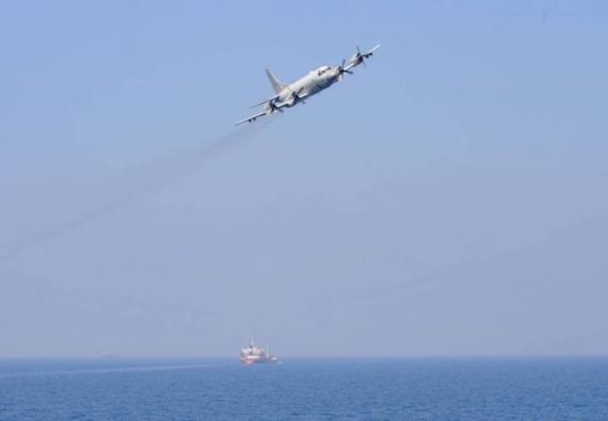 日本海上自卫队向吉布提基地派遣的第三批P-3C空中巡逻机正在亚丁湾上空巡逻