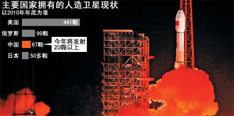 中国已经确立了今年之内发射20颗以上人造卫星的计划,并正在逐步实施。以去年年底为准,正在运行的中国人造卫星总数为67颗。从数量上看,还落后于美国(441颗)、俄罗斯(99颗)。但在一些特别领域,中国人造卫星正快速追赶此前一直独占鳌头的美国。