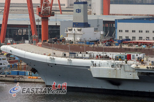 近日,东方网记者赶赴大连港口近距离观察瓦良格号,与游客和军事爱好者们感同身受的是,目前,中国首艘航空母舰瓦良格号的改装工程已经收尾,舰体已经涂上了海军标准色,意味着瓦良格号下水试航已进入倒计时。