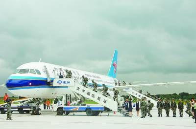 这是一场以实战为背景的演练。130余名部队官兵和医护人员乘坐地方航空公司的飞机向数千公里外的某地紧急机动,执行应急作战和战地救护任务。