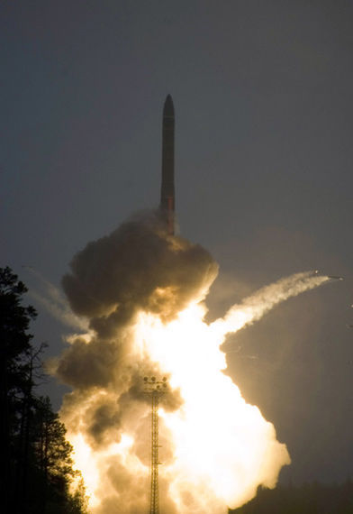 资料图:俄罗斯2007年5月29日从普列谢茨克航天发射场首次试发射了一枚RS-24新式洲际弹道导弹。