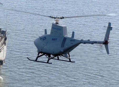资料图:美海军MQ-8B火力侦察兵垂直起降无人机进行舰上作业