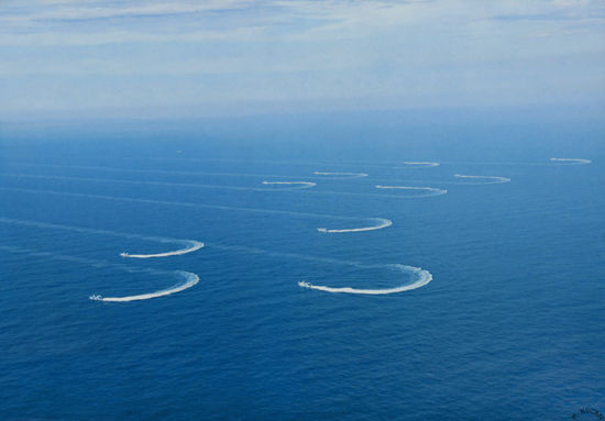 中国海军022级隐身导弹艇编队正在进行水面机动训练