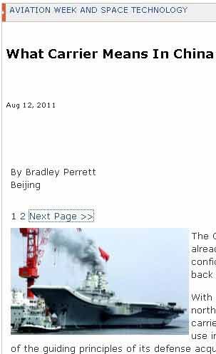 美国航空周刊有关中国航母动力系统分析文章的截图