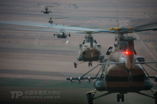 新疆军区某陆航旅编队飞行。特约记者 李翔摄