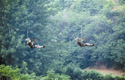 侦察队员进行空中穿越。戴丹华摄