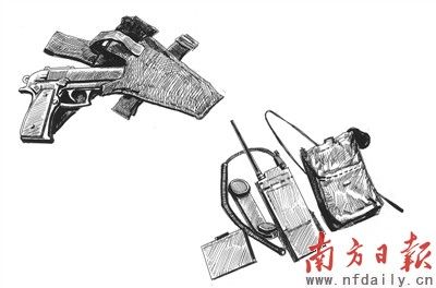 勃朗宁9毫米手枪与AN/PRC-126无线电台。