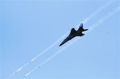 “打击目标已确认。”间隔不到10秒钟,轰炸机飞行员反馈消息。记者在现场看到,数秒钟后,两架歼击轰炸机呼啸而至,4发精确制导炸弹应声落地。硝烟弥漫中,“敌”火力点受到重创。