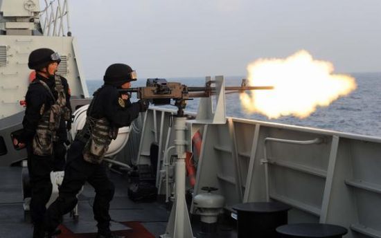 11月28日,第十批护航编队结合护航任务组织实弹射击训练。图为特战队员进行重机枪实弹射击训练。记者高飞摄