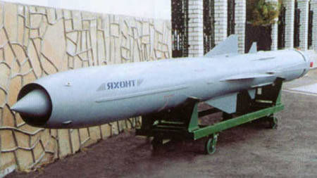 ZM55E“宝石”超音速反舰巡航导弹能够攻击300公里内的目标,携带重达200多千克的弹头,主要用于在猛烈的火力和电子对抗条件下,攻击 敌方水面战舰编队或单个舰只。它的主要特点是战斗使用完全自动化,在各个空中飞行阶段拥有较高的超音速速度,能在海基、空基和陆基载体上通用。它具备超视 距攻击能力,能够“发射后不管”,能在所有飞行阶段超音速运动,能在水面、水下、空中和地面载体上通用。另外还使用了隐形技术,对于敌方的现代化雷达搜索 设备来说,具有较高程度的隐蔽性。(东方网 书山)