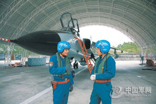 两名英雄的飞行员和心爱的战鹰在一起。胡百太摄