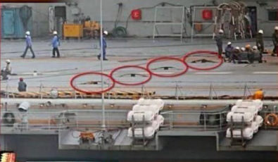 微博网友发图:中国航母拦阻索清晰可见