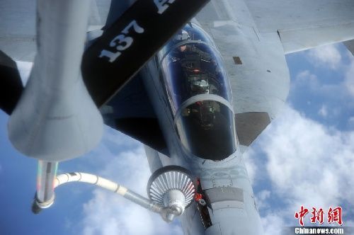 资料图:美日联合军演中美军大黄蜂战斗机空中加油。