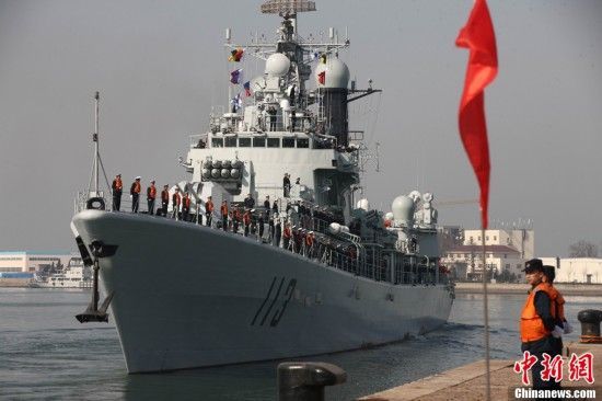 青岛2月27日电 记者陈典宏、特约记者米晋国报道:今天上午10时,我海军第十一批护航编队从山东青岛某军港解缆启航,赴亚丁湾、索马里海域接替第十批护航编队执行护航任务。护航官兵在军舰甲板上分区列队,向祖国和人民庄严敬礼、向前来送别的亲人和战友挥手告别。