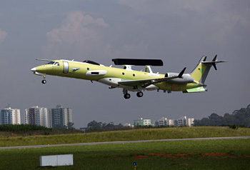 [据印度国防部国防研究与开发组织(DRDO)网站2012年4月5日报道] 2012年4月4日下午7点30分,印度第2架自行研制的预警指挥机在巴西的圣若泽杜斯坎普斯(San Jose dos Campos)成功完成了首飞。该机以巴西航空工业公司的EMB-145I飞机为平台,在首飞时已经安装了必要的任务系统和部件,其中包括用于暂时代替“有源天线阵列单元”(Active Antenna Array Unit,AAAU)的模拟配重。