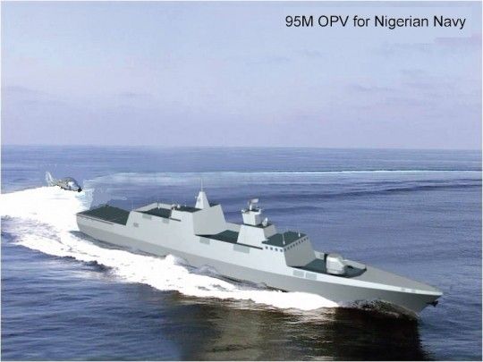 环球网国际军情中心2012年4月17日消息,最新一期的《简氏防务周刊》(Jane’s Defence Weekly)刊文称,尼日利亚海军(NN)宣布其总统古德勒克-乔纳森(Goodluck Jonathan)已批准从中国采购两艘新造的长95米的近海巡逻舰(OPV)。