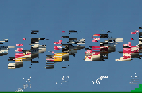 “新舟”600飞机在第12届迪拜航展上以全新的企业涂装进行飞行表演。图片:中国航空工业集团公司