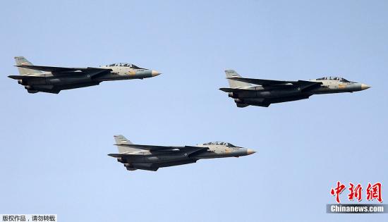 当地时间2012年4月17日,伊朗举行大型军队阅兵式庆祝建军节。图为伊朗空军F-14战机飞过检阅台。